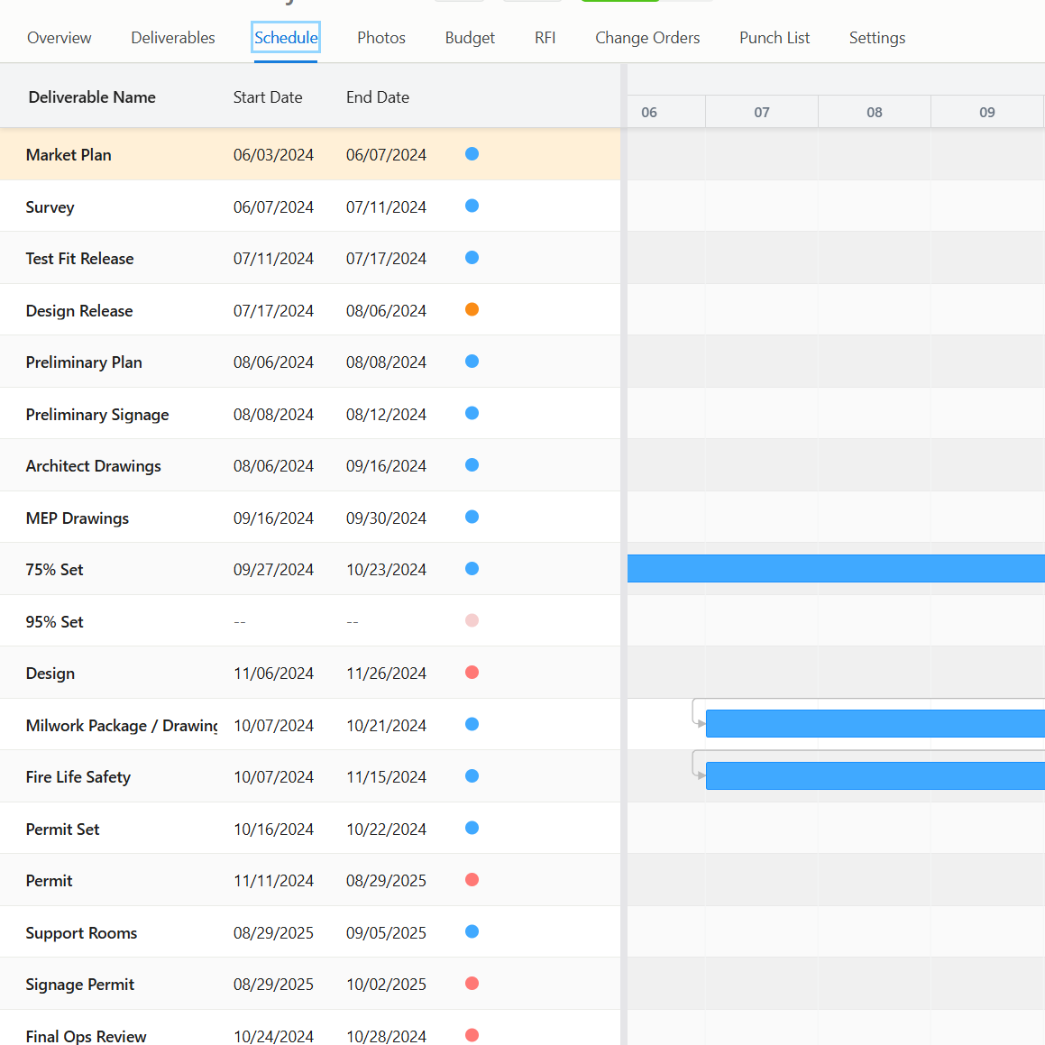 It's time to ditch the spreadsheets and see how our dynamic project management module can save you and your development team hours building and managing every project timeline.